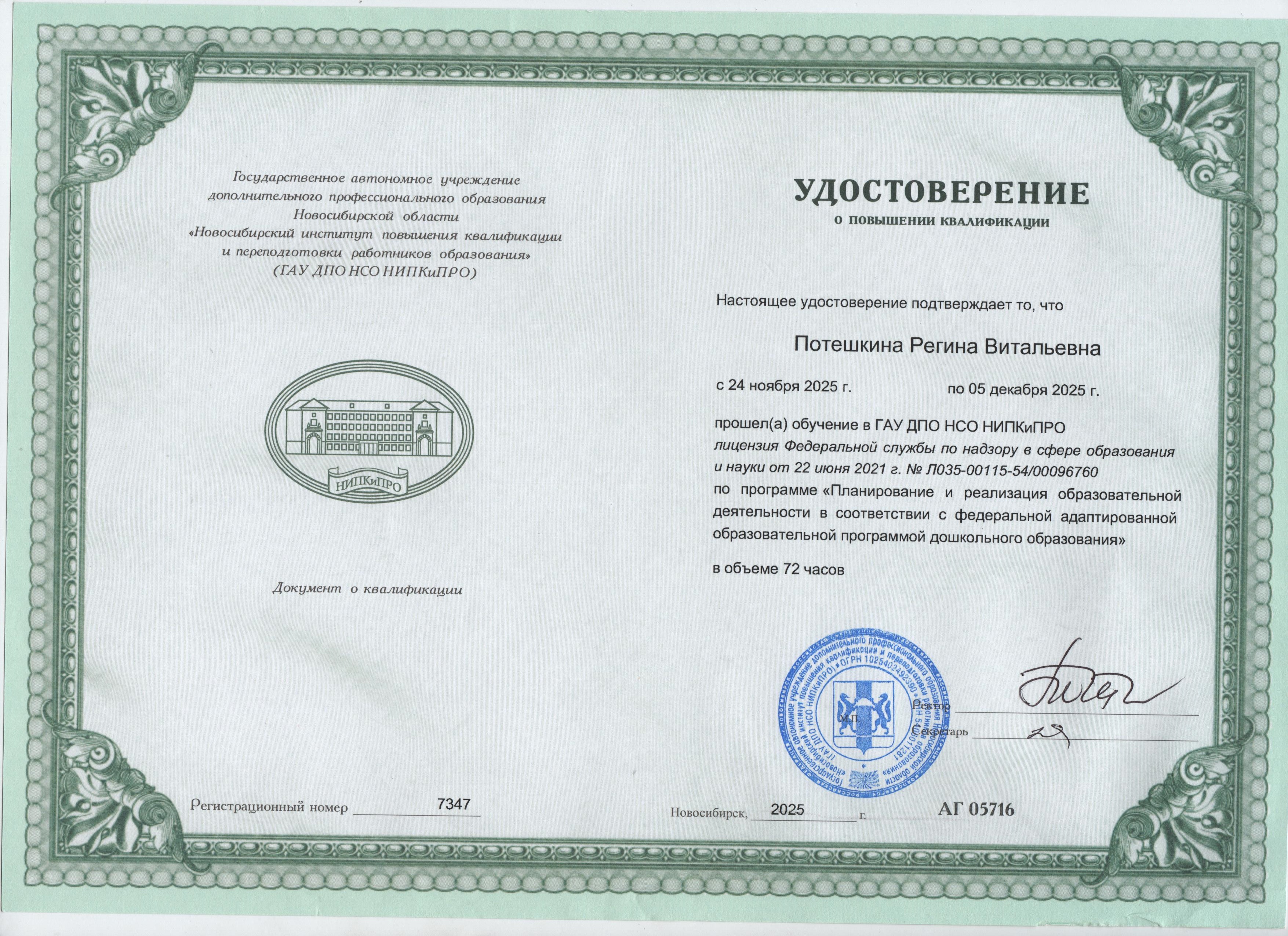 ("Новосибирский институт повышения квалификации и переподготовки работников образования" (ГАУ ДПО НСО НИПКиПРО). 72 часачасов. Форма обучения: Очно-заочная . Направленность: иное).